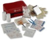 Stay Safe Portable First Aid Kit Product Size: 5" h x 7.875" w x 3.625" d Stay Safe Portable First Aid Kitpcs 42-piece kit includesZipper nylon case1Mylar Blanket1Scissors1Tweezers1Latex Gloves2Eleatic bandages2Surgical Pad2Triangular Bandage13" Bandages10Iodine Prep pads4Alcohol Pad4One roll tape1Antiseptic wipes2Cotton Balls10Total42StaySafe First Aid Kits are intended for minor injury only and not intended as a substitute for appropriate medical attention. Please seek appropriate medical attention as needed.